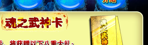 使用已激活魂之斗神卡的帐号登录游戏的玩家,找到指定NPC——完美礼品使者,达到指定等级完成任务即可免费领取以上魂之武神卡物品!