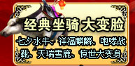 想获得这些经典坐骑吗?机会来啦!现在只要您在商城中购买12张“蛮牛皮”,就会获得“南华礼袋”,拥有南华礼袋就有机会获得“水牛礼包”,“雪鹿礼包”,“战熊礼包”,“麒麟礼包”,礼包内就有您想要的坐骑了。