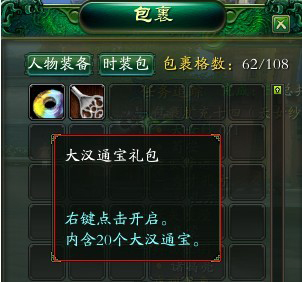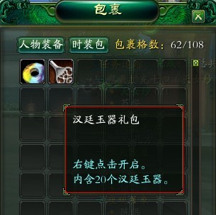 打开包,就可以获得20个大汉通宝或汉廷玉器。