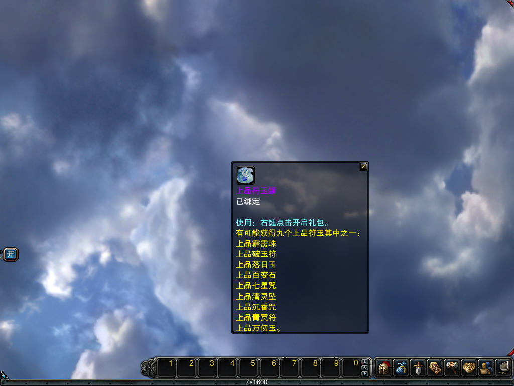 “上品符玉罐”可随机开出九种上品符玉之一。开出符玉不绑定 |