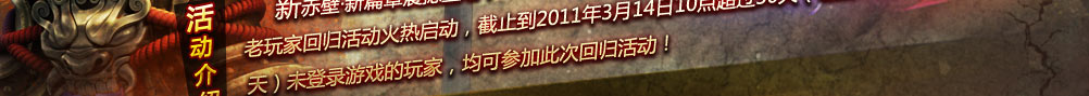 2011年你不是一个人在战斗!新竞技、新战场、新玩法哪一样都少不了兄弟姐妹们并肩作战!我们一起来发现赤壁为你们准备的更多新惊喜吧!五大篇章即将陆续登场,你还在等什么?