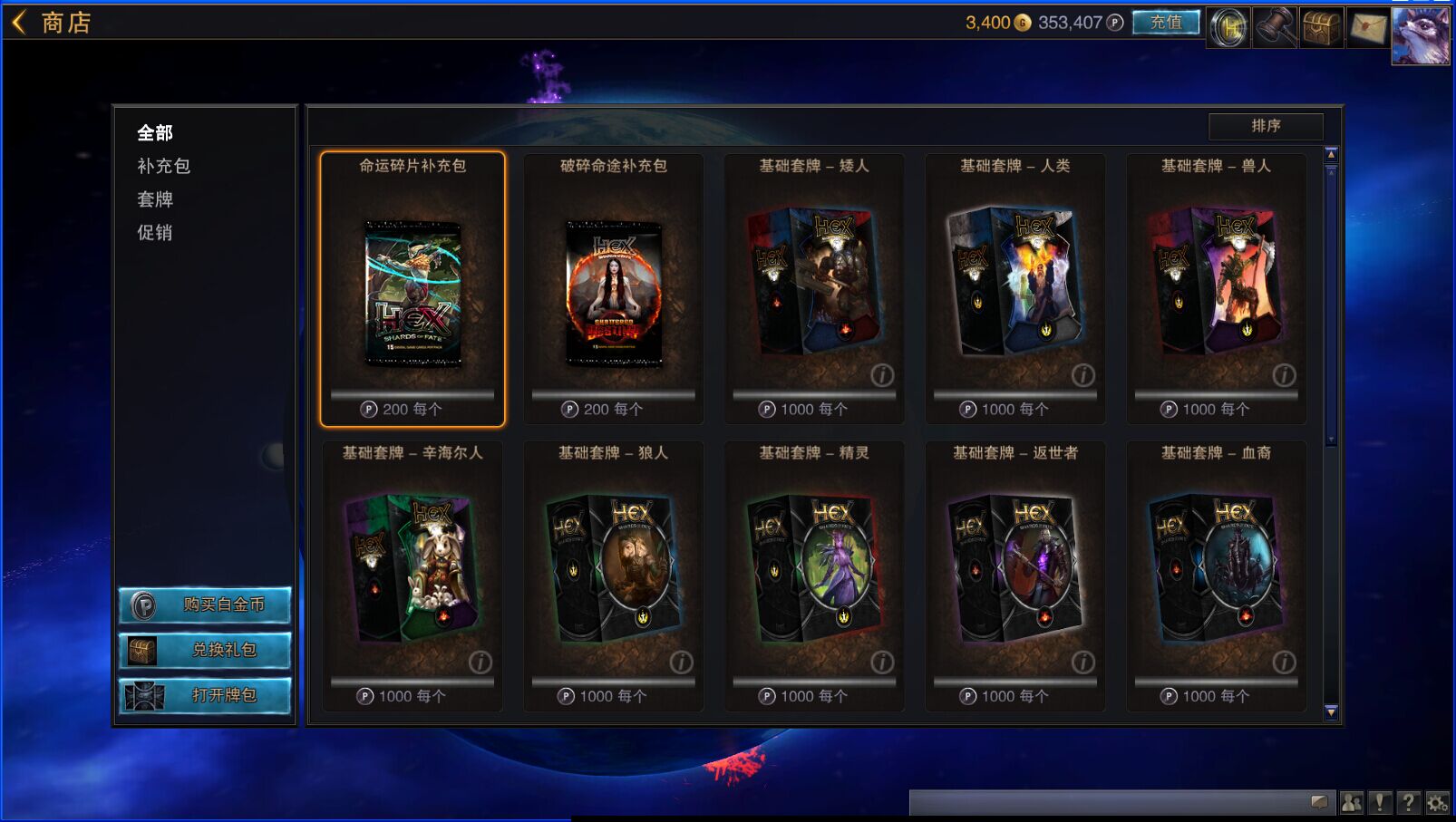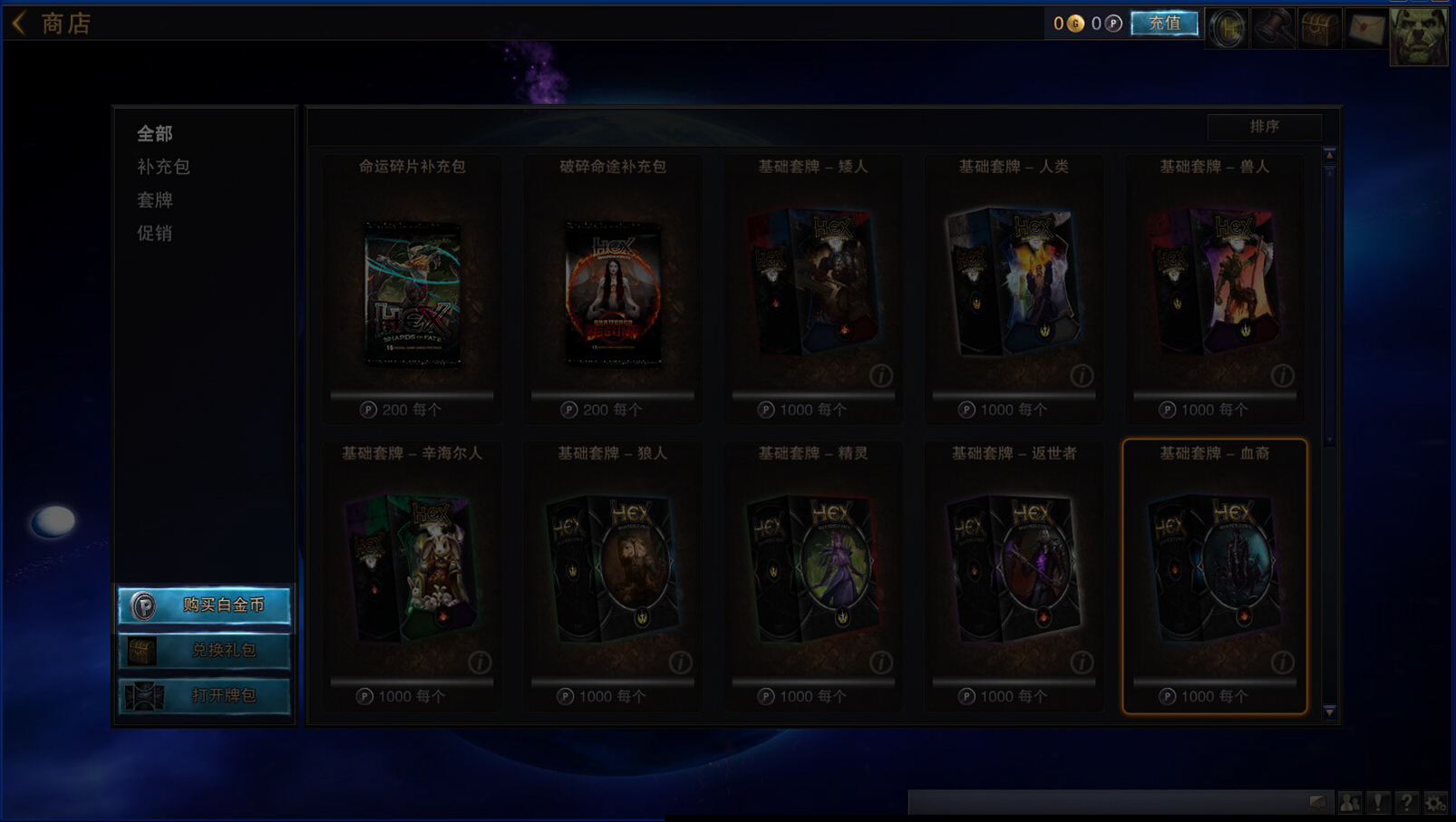 在商城购买卡包花费的是白金币,白金币可以通过游戏充值、拍卖行拍卖或是邮件邮寄获得。