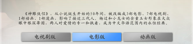 1982年由当代武侠导演代表人物之一的张彻,为邵氏公司拍了一系列的金庸武侠片,这部"神雕侠侣"由张彻一手捧红的傅声担任杨过一角,傅声这位早逝的巨星相貌并不算帅,他是属于俏皮型的,演过儿的狂与周旋在众美女之间似乎不太适合,小龙女由黄淑仪担任,不认识这位女星。改编后主要交代杨过由出生至邂逅小龙女前的事迹,及与郭靖一家之恩怨;值得一提是,有杨过没小龙女的《神雕侠侣》,且看张大导在镜头下如何妙笔生花。