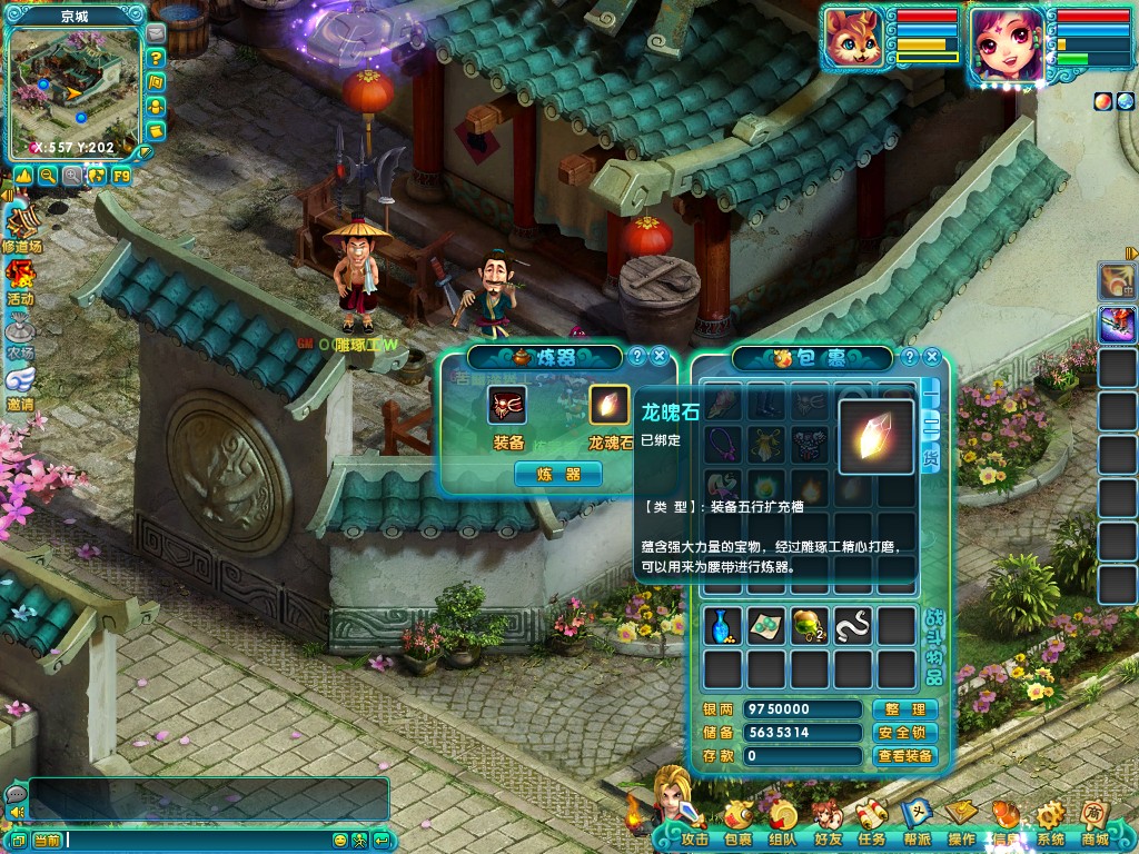 4.玩家可以利用装备炼器在装备上增加一个器属性,在空白器属性中可以镶嵌龙晶,不同五行属性的龙晶会提供不同五行属性的加成。