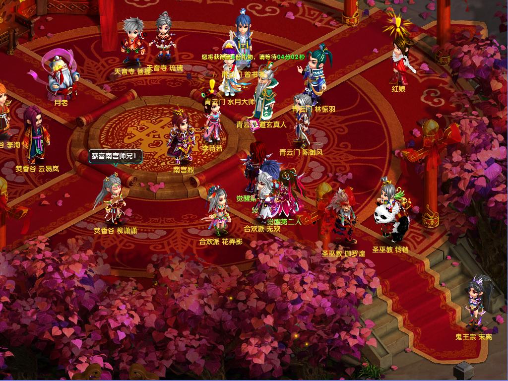 南宫烈和李诗若盛大的订婚仪式开始了,各路高手都来道贺。玩家同李诗若进行对话,此时突然出现了一条怪龙,趁众人不备,将李诗若掳走。南宫烈的未婚妻子被抢走,悲愤欲绝,需要你协助南宫烈寻回未婚妻。