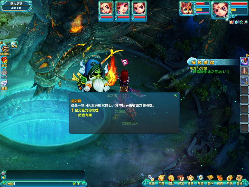 3、经过一番调查后,得知李诗若是被巨龙掳走,需要前往巨龙之穴的“耀金龙窟”副本进行营救。
