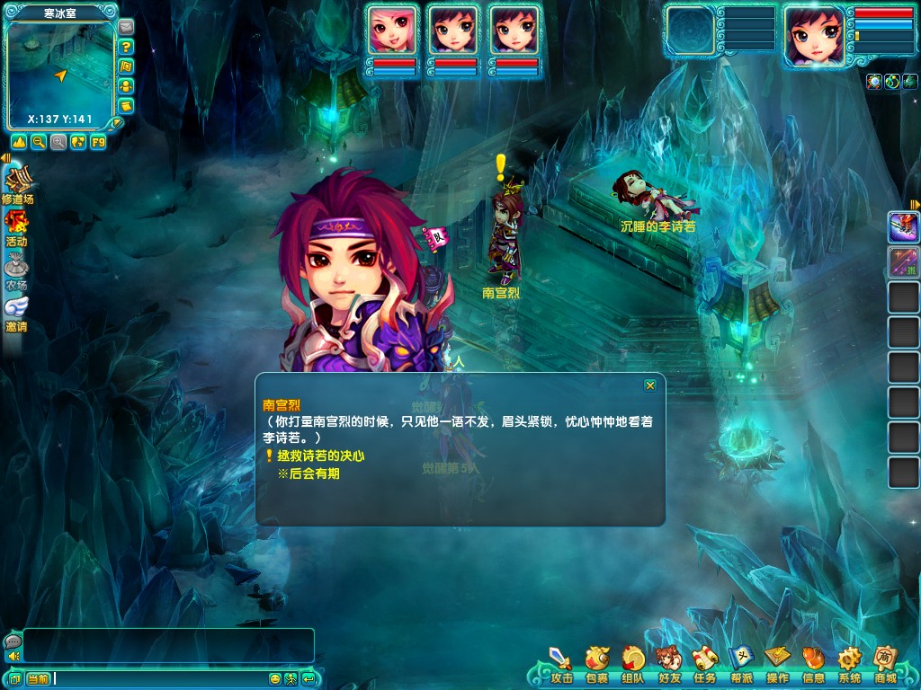 1、 首先,玩家需要与寒冰室中的NPC【南宫烈】对话领取80级觉醒任务。
