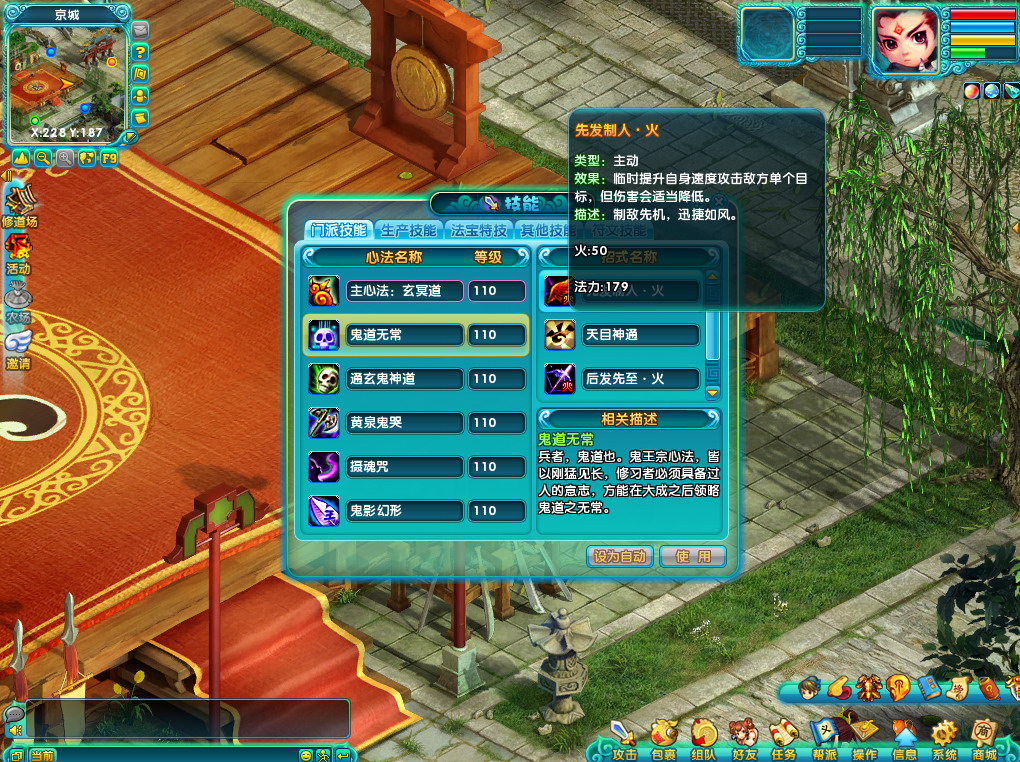 4.各门派的技能会根据五行属性的不同,相对应的增加属性加成。