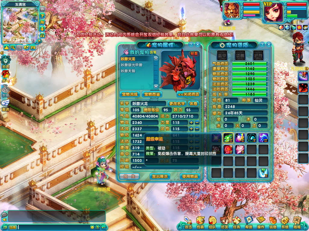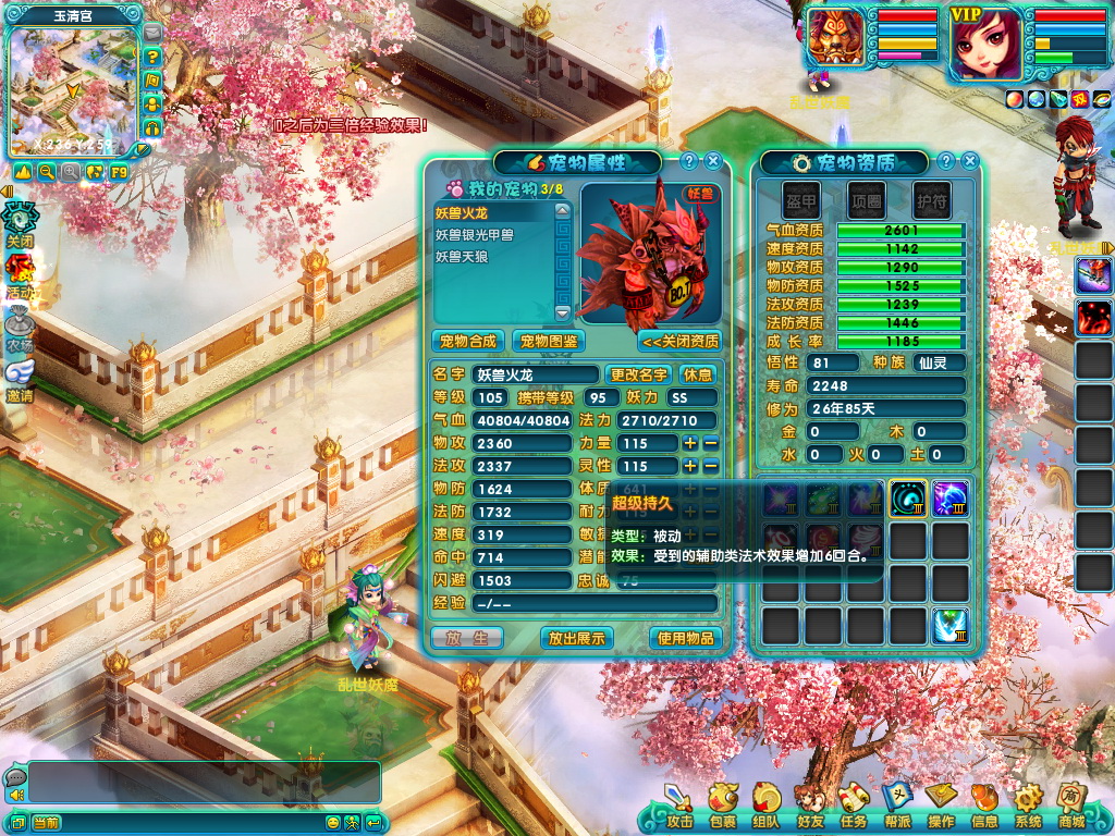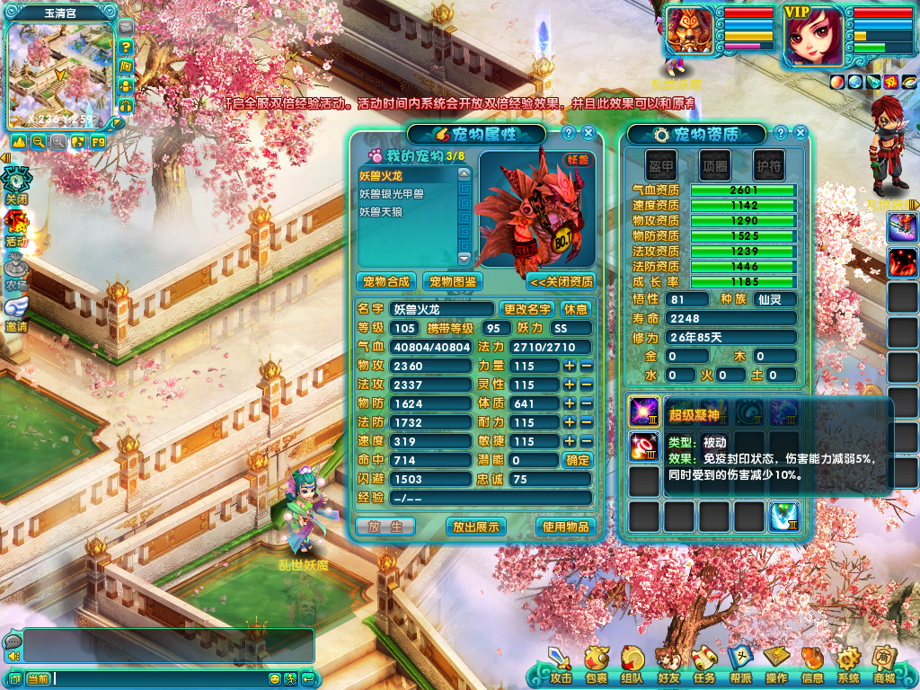 火龙宠物凭借着高成长以及超高的血资质,成为血宠最佳选择之一。减少伤害,增加增益效果的技能几乎成为了标准血宠的专用技能。超级铁壁和超级抗拒的组合提升生存能力,超级持久和超级光明的组合提高受到的,超级凝神的减伤以及超级幸运的免疫暴击,一个个平凡的技能成就了不平凡的宠物。