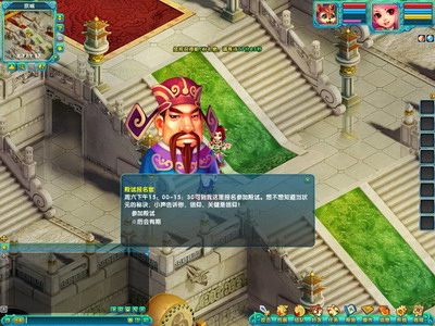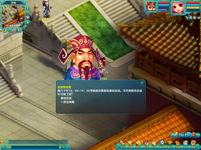 活动时间内可到“殿试报名官”处报名参加殿试,到“殿试考官”处开始殿试答题。一共二十道题目,若通过殿试则可获得殿试通过者的称号与丰厚的奖励。
