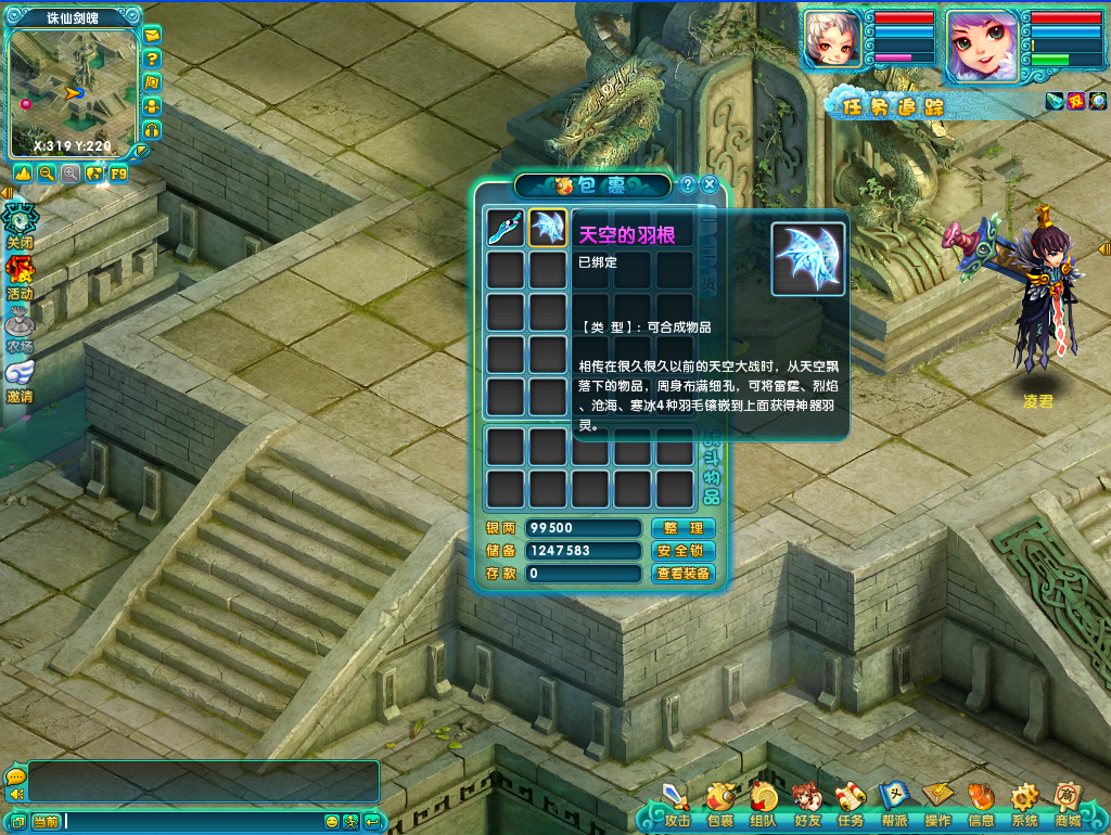 4.之后玩家可以通过南疆羽灵仙子处的三清灭魔以及妖兽突袭任务来获得羽毛碎片。