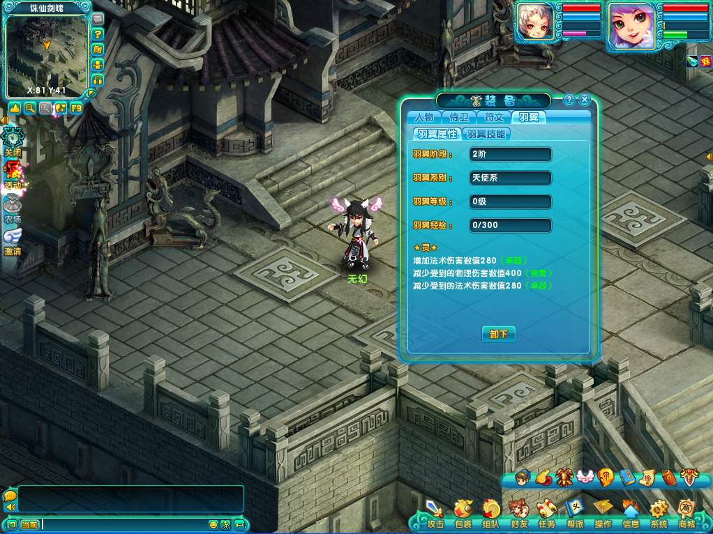 4.有了一个满意的翅膀之后大家就可以去经常参加羽灵仙子的三清灭魔和妖兽突击任务了,在活动中大家可以获得到翅膀积分和翅膀经验,翅膀经验的作用顾名思义就是提升翅膀的等级,翅膀积分用于在天空之城的天空羽翼员处兑换道具。