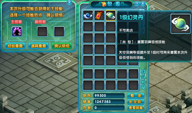 2.如果对出现技能不满意可以使用经验或者道具重置两种办法进行刷新,经验重置的意思就是放弃当前经验重新开始,道具领悟则无需扣除经验。