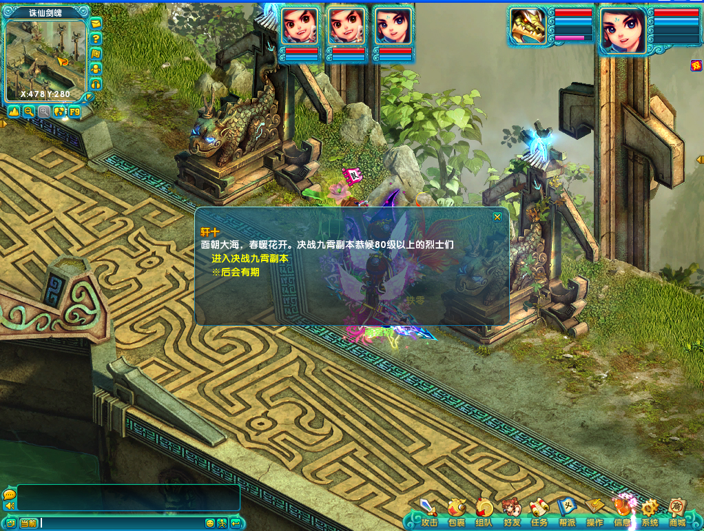 决战九霄副本位于天空之城的下方,等级在80或以上等级的玩家,并且拥有一支最少3人的队伍即可进入。