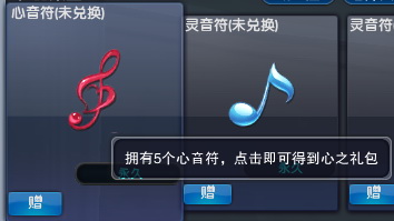 音符礼包中含有灵音符或心音符,5灵音符=灵之礼包,5心音符=心之礼包: