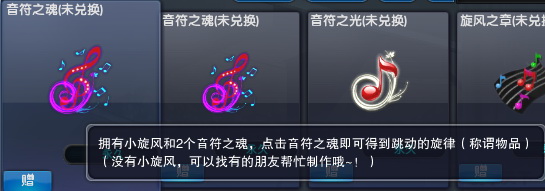 音符之魂:拥有小旋风和2个音符之魂,点击音符之魂即可得到跳动的旋律,如果没有小旋风,可以找身边有的朋友帮忙哦~!