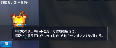 | 任务描述 | 热闹非凡的虎年新春已经来到了,在新年的福虎之后,这次可爱的趴趴小虎也要来为大家送上虎年的特别祝福哦,完成任务后,就可以使用趴趴小虎的奶嘴召唤出可爱的小虎哦~ |