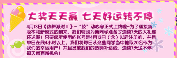 持有该道具,在4月13号到23号之间每天晚上20点到23点之间,跳任意一曲, 即可加入活动,获得鼓动心扉特别活动任务!