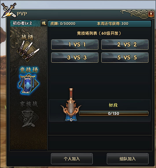 2. 点击战场竞技,选择竞技场即可查看当前战阶段位