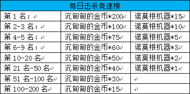 ·各职业分别记录榜单,各职业排名前200(最快通关)的玩家根据排名获得金币奖励