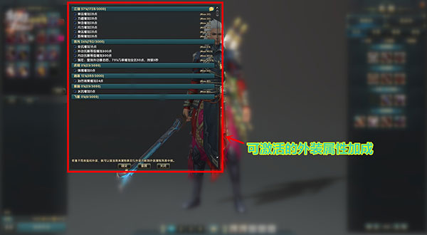 ·玩家选择的每类时装对应的属性的数值会随着该类时装收藏点数的增加而增加