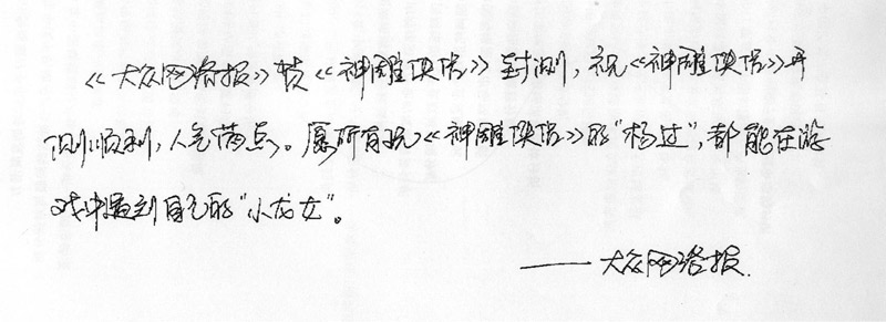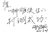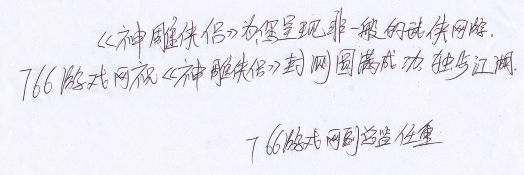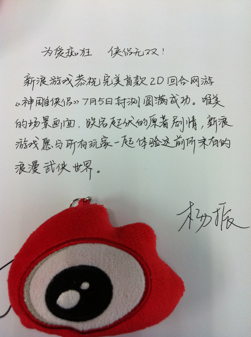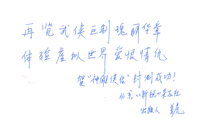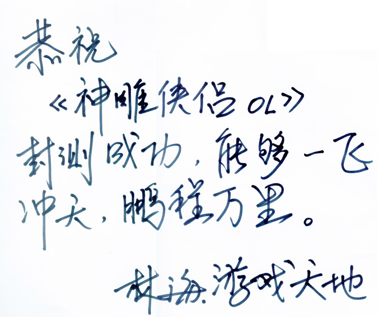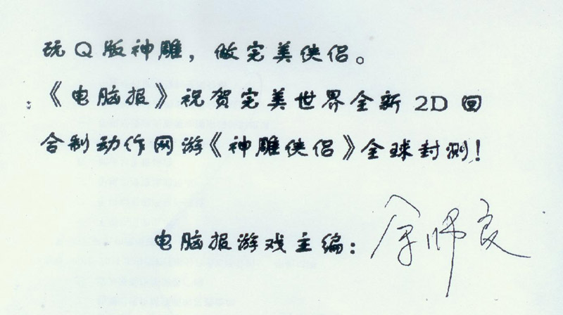 恭祝神雕侠侣一炮走红,人气一破冲天,同时愿完美世界再创网游完美新佳绩。