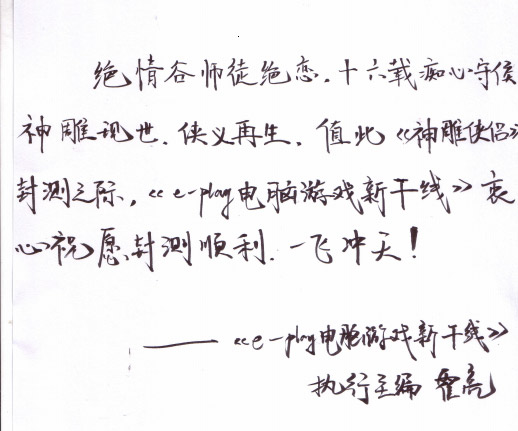 恭贺神雕侠侣封测圆满成功,祝人气爆棚,热力不减!