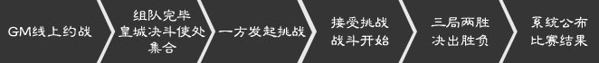 - 参赛队伍需按照赛程在指定时间,在皇城决斗使处向对手发出挑战。