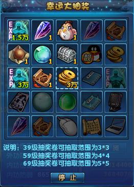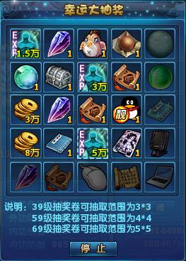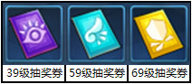 1、本活动抽奖券只能在《步步惊喜 百万豪礼天天送》中获得,分为39级可以使用的抽奖券、59级可以使用的抽奖券和69级可以使用的抽奖券三种,如下图。