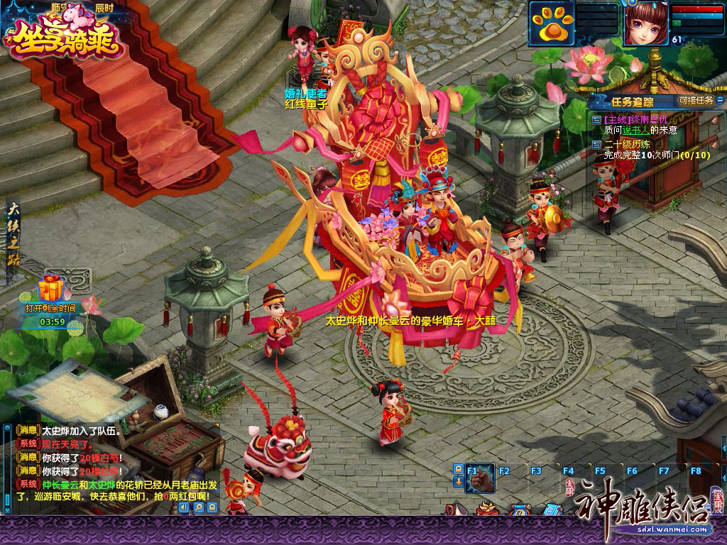《神雕侠侣》首部资料片“坐享骑乘”将于5月23日上线,为大家带来无穷的骑乘乐趣,为了感谢广大玩家对《神雕侠侣》的支持与厚爱,为了让游戏中的情侣体验到非同寻常的婚礼。我们特此举办“豪华婚礼活动”。