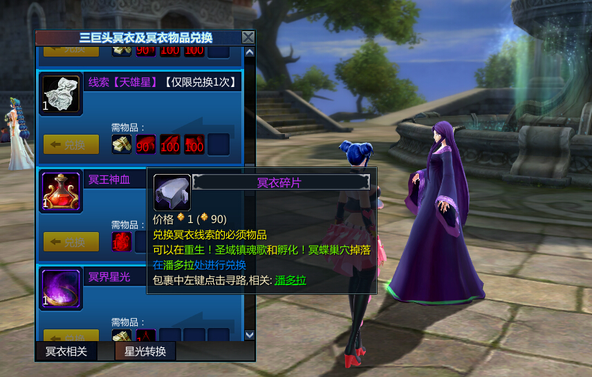 首先,让我们认识下伫立于圣域的冥界NPC潘多拉(圣域贸易区:-237,5),通过潘多拉,我们可以兑换现有的冥衣。普通的冥衣线索,需要玩家角色等级到达潜修2,才可以获得。