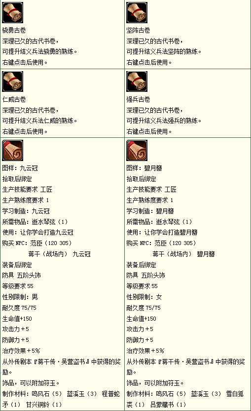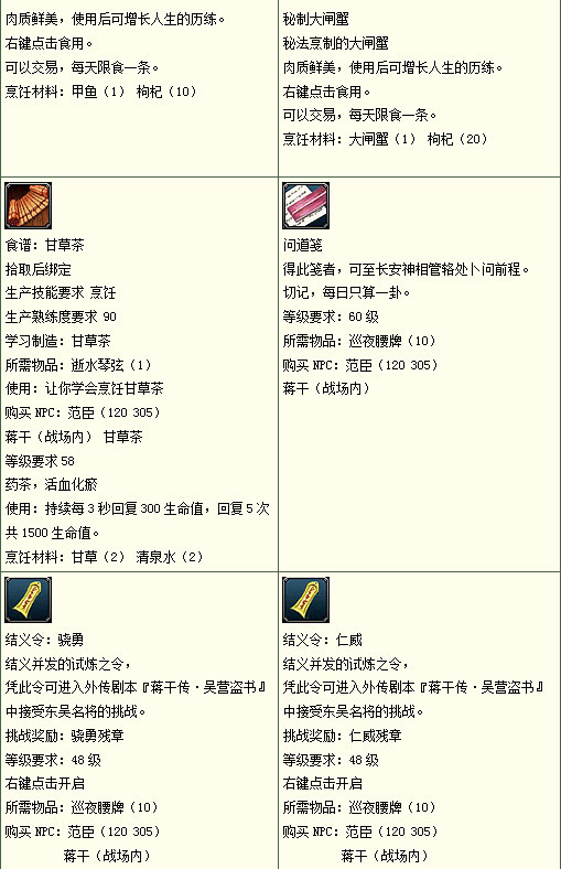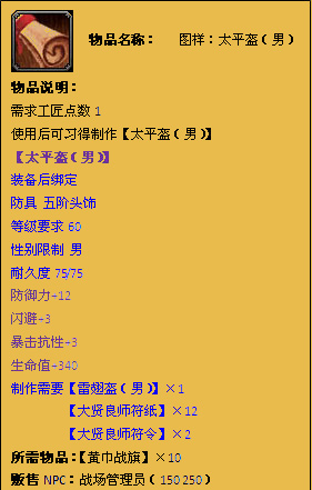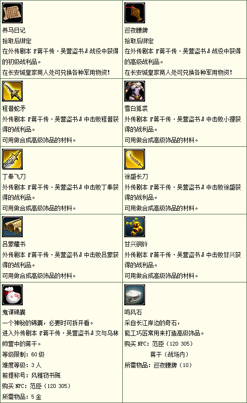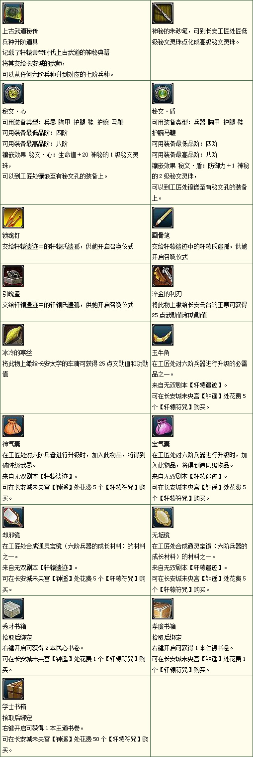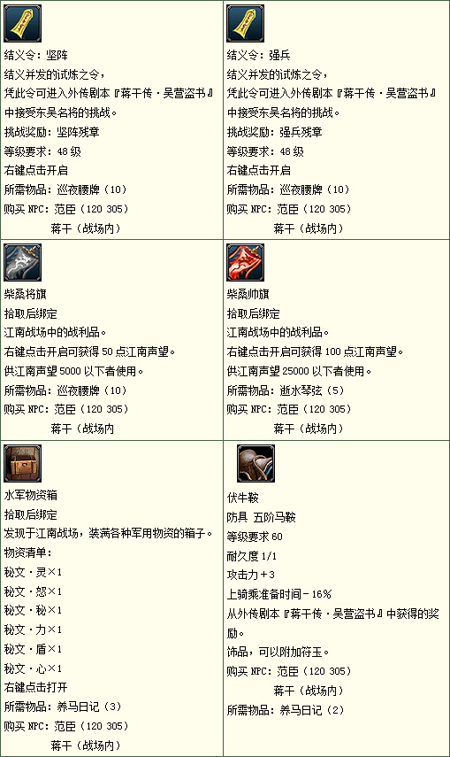 利用从战场所得到的物品可以关中长安城战场管理员(150 250)处购买军备物资: