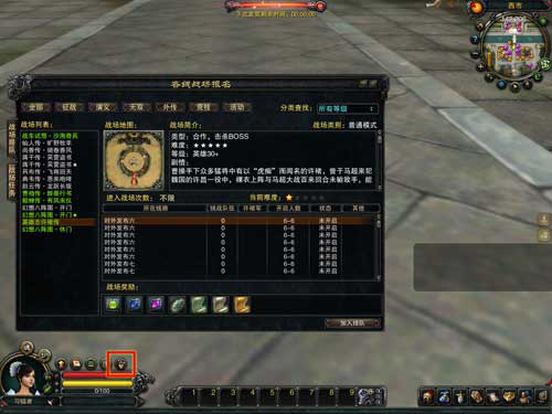 点击界面左下角的"战场"按钮便可随时随机进入副本!