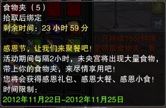 拾取美食后,随机获得感恩礼包、感恩大餐、感恩小食之一,直至食物夹用光。