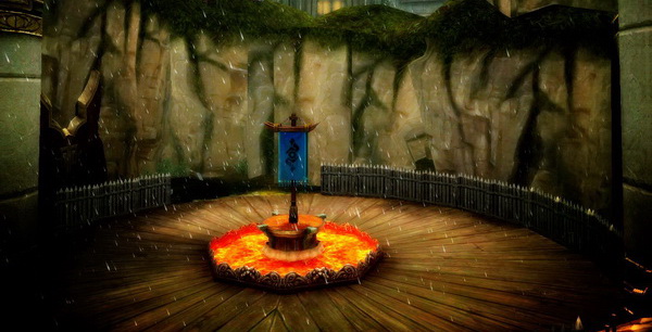 初始状态下双方营地与中央资源点之间被水阻隔,需要从两侧迂回到达,玩家需占领资源点"军械库",才能从水底升起本方方向浮桥,连通本方大营与中央资源点之间的近路,便于本方玩家死亡后从基地赶来参战,浮桥升起后为永久存在,战场结束时关闭,并在关闭前将桥上玩家传送至桥头。