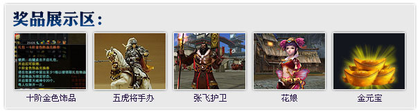 2、 活动期间,等级不低于英雄31级的玩家,满足每周在线不低于120小时、有等级/经验值、充值变动三种任意一种情况下,可参与抽取每周奖品五虎将手办·关羽1只及五虎将手办·赵云1只;