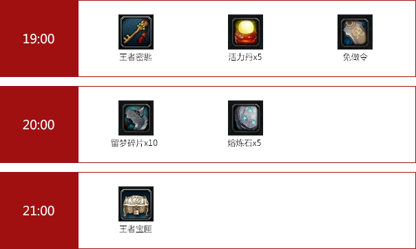 活动期间,每天19点、20点、21点整点在线,即可获得丰富的奖励哦!