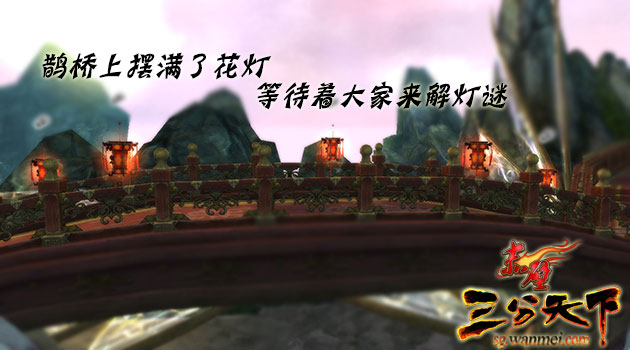 2、 鹊桥挂了许多彩灯,找一个自己喜欢的,取下灯谜,答对灯谜,获得不同口味的元宵,送去给喜欢这种口味元宵的人,他一定会送你一份元宵。吃了元宵才能团团圆圆,美美满满!