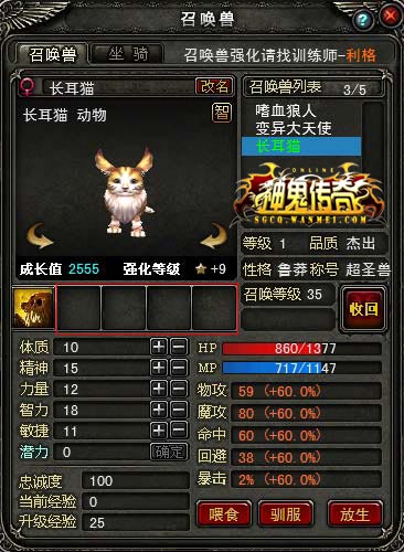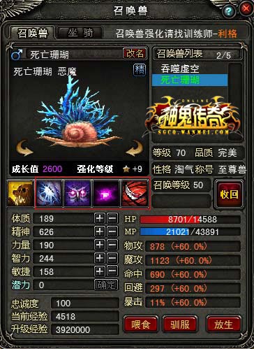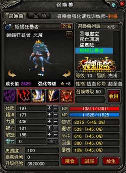 搭配: 灵动(辅主类)LV2:增强主人智力。 精神恢复(辅主类)LV2:缓慢恢复主人的魔法值。 嘲讽(攻击类)LV2:吸引单个怪物攻击召唤兽。 生命恢复(辅主类)LV2:缓慢恢复主人的生命值。 这种搭配以辅主为主,可以为主人恢复魔法值和生命值,级别低的玩家平时带着这样的召唤兽练级,能节省不少药钱。 |