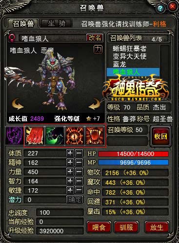 被动类技能:不需要施放,直接对召唤兽本身产生效果。