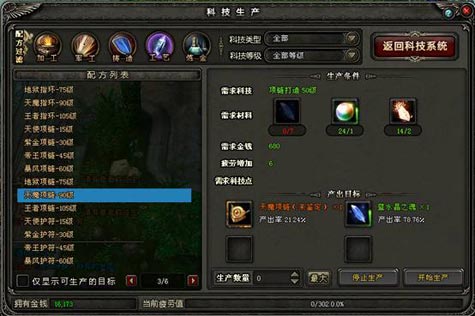 在生产工艺列表中点击要生产的道具,然后查看各项要求是否满足,如全部满足点击【开始生产】按钮开始生产,生产完成后,道具会存入角色背包内。