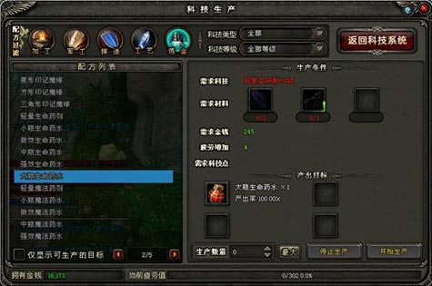 在生产列表中点击要生产的道具,然后查看各项要求是否满足,如全部满足点击【开始生产】按钮开始生产,生产完成后,道具会存入角色背包内。