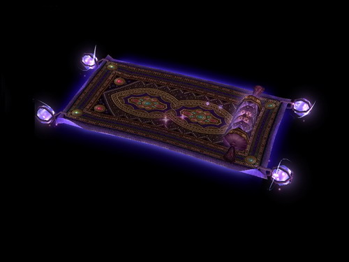 | 魔毯 | 1 | 被传说中最伟大的魔法师释放了魔法的毯子,可以在空中飞行。 精良品质坐骑 (强化需要消耗精良坐骑强化宝石)提升玩家移动速度:35% 通用坐骑,提升玩家生命上限:1200 |