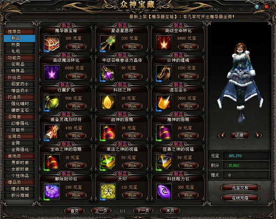 按快捷键【V】键或点击屏幕右上方的【众神宝藏】按钮,即可打开众神宝藏游戏商城。