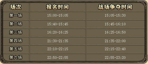 5、当双方阵营在超过报名时间后仍未满足平均10人,则战场无法开启,重新等待下次战场报名。