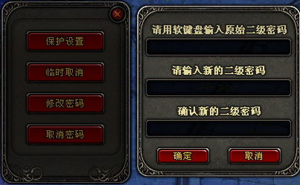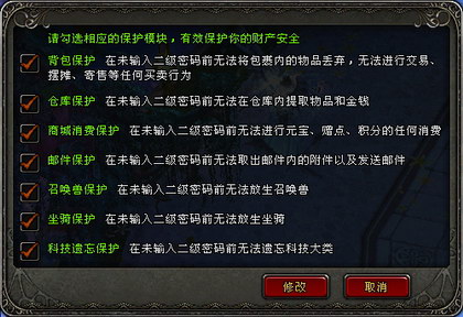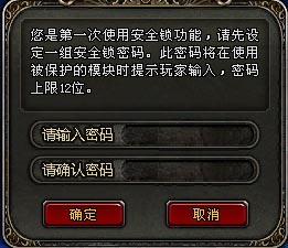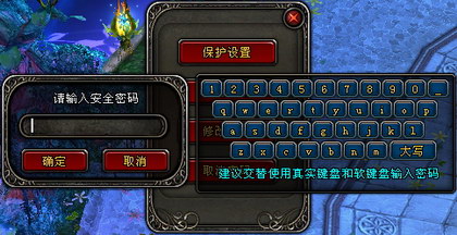 用户在登录《神鬼传奇》游戏之后,可以使用游戏内的安全锁定功能和装备及宠物锁定功能,对自己的角色道具装备进行加锁。处于安全锁的保护,玩家所有物品金钱无法通过任何途径转移或消耗,从而避免被盗号后虚拟财产被迅速转移造成的损失。