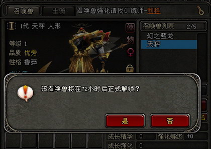 步骤三:如果需要对该召唤兽进行交易或其它等操作,需要点击召唤兽界面中右上角的解锁键,会提示;“该召唤兽将在72小时后正是解锁”只有解锁后的召唤兽才能进行交易、放生、学习技能等操作。