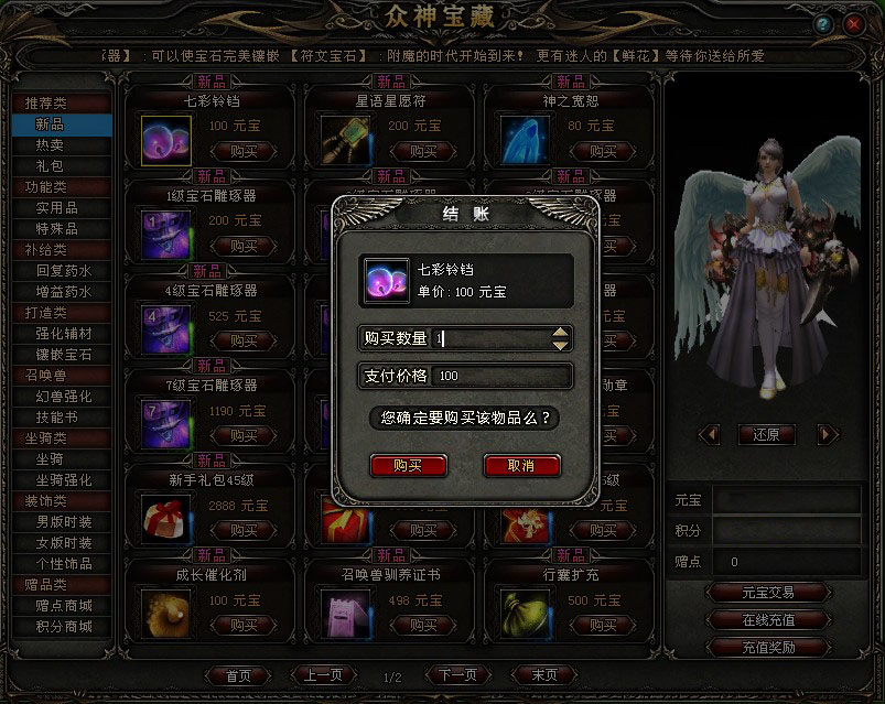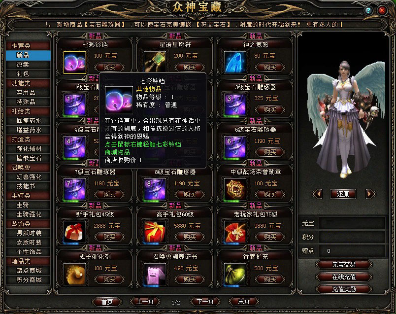按快捷键【V】键或点击屏幕右上方的【众神宝藏】按钮,即可打开众神宝藏游戏商城。