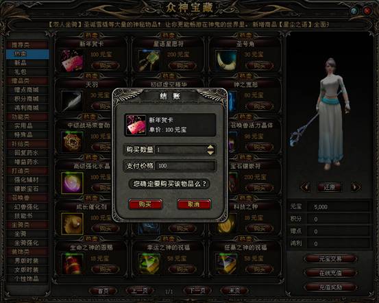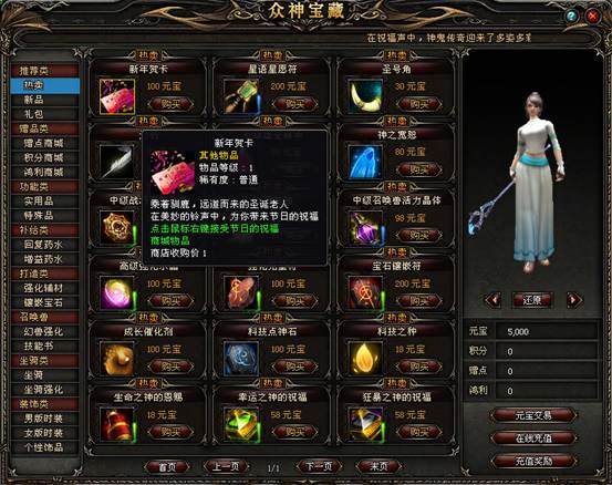 按快捷键【V】键或点击屏幕右上方的【众神宝藏】按钮(见图一),即可打开众神宝藏游戏商城。