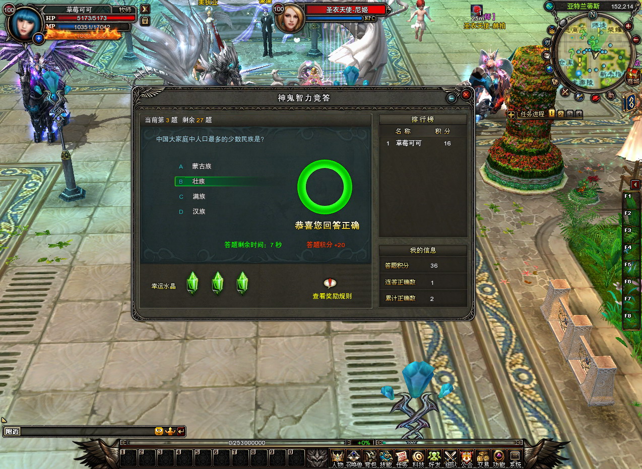 1)、所有参与竞答活动的玩家,在活动结束以后都可以根据积分获得高额的经验奖励,积分越高,奖励越高;